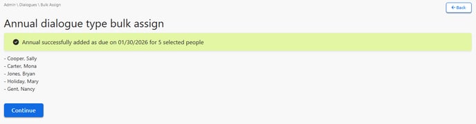 Yes! If it is time for annual reviews, Administrators can follow these instructions to bulk assign performance dialogues to all team members.
